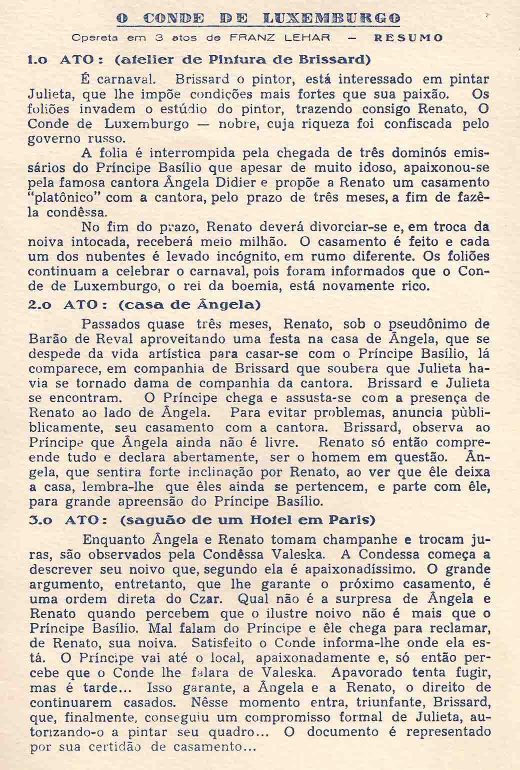 Operetas de São João del-Rei . O Conde de Luxemburgo . 1972
