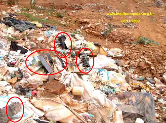Cartuchos de impressora laser, carcaças de eletrônicos, calçados e uma imensidão de plásticos encontram-se deitados eternamente no solo mãe gentil.