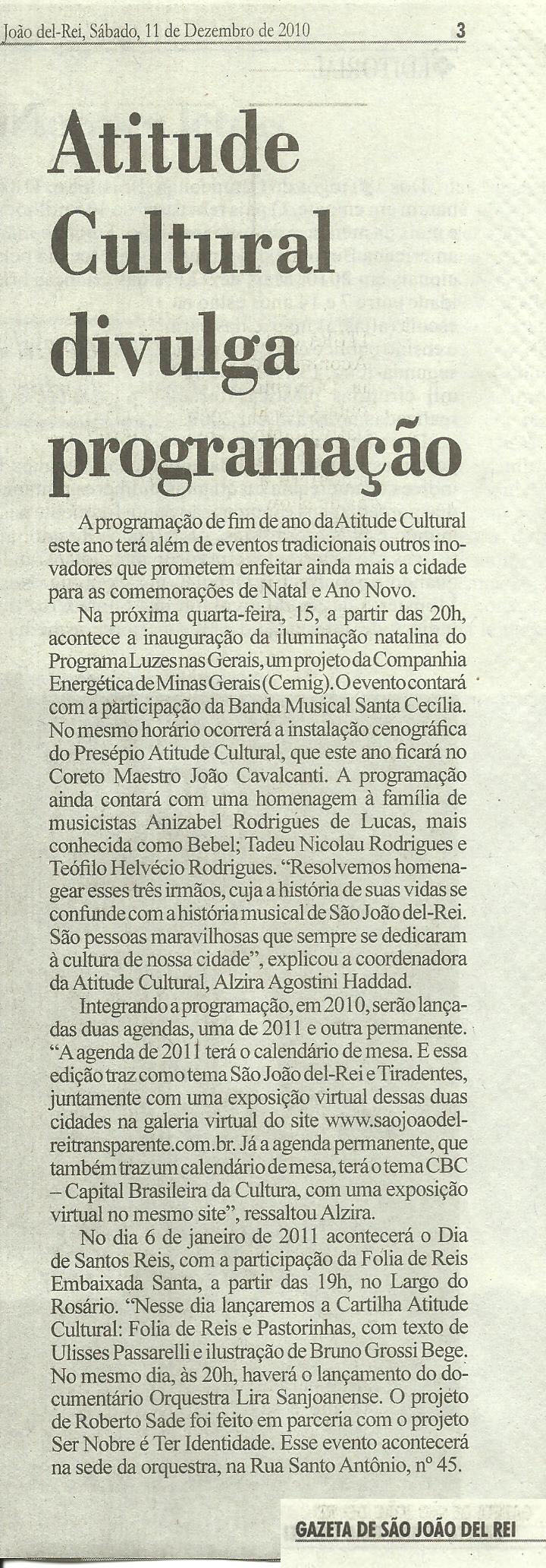 Clipping de Notícias . Fim de Ano e Férias Cultural 2010 . Atitude Cultural e Parceiros . São João del-Rei