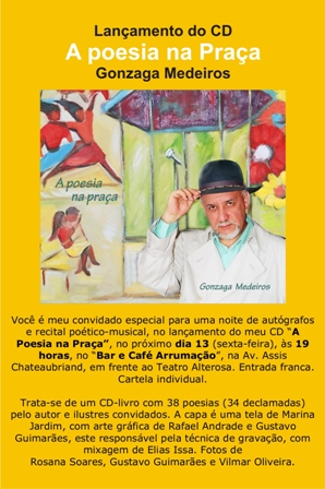 Uma noite de autógrafos, recital poético e música, no lançamento do CD “A Poesia na Praça”, do poeta Gonzaga Medeiros, uma das maiores expressões culturais de Minas Gerais.