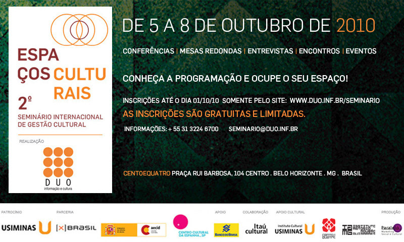 2º Seminário Internacional de Gestão Cultural . Inscrições até dia 01 de outubro