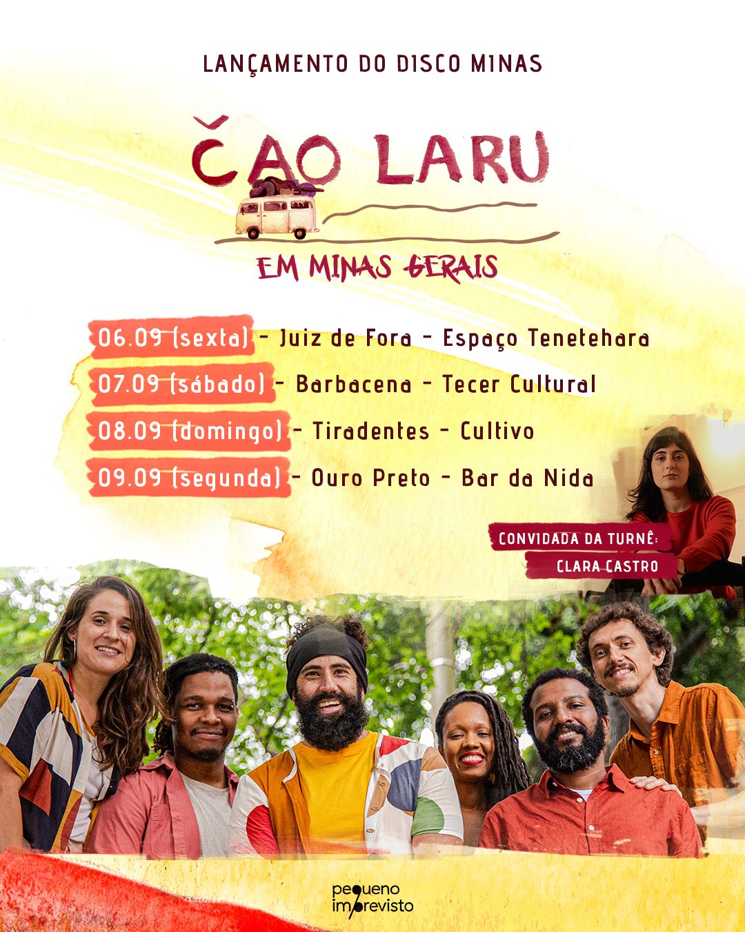 Nesse mês de setembro o grupo Čao Laru lança o disco "MINAS" em Minas Gerais, acompanhado pela presença da cantora Clara Castro em todos os shows da turnê. No domingo do dia 8 de setembro o grupo fará sua passagem em Tiradentes, no restaurante Cultivo Coletivo. As apresentações da turnê se estendem para outras cidades mineiras, incluindo: