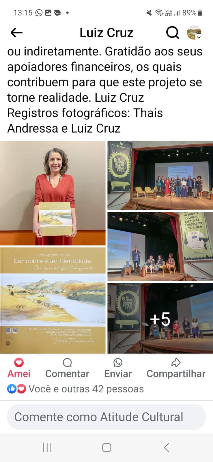 - Alzira Agostini Haddad/autora/Atitude Cultural São João del-Rei/cerca de 800 ações socioculturais realizadas e inventariadas
