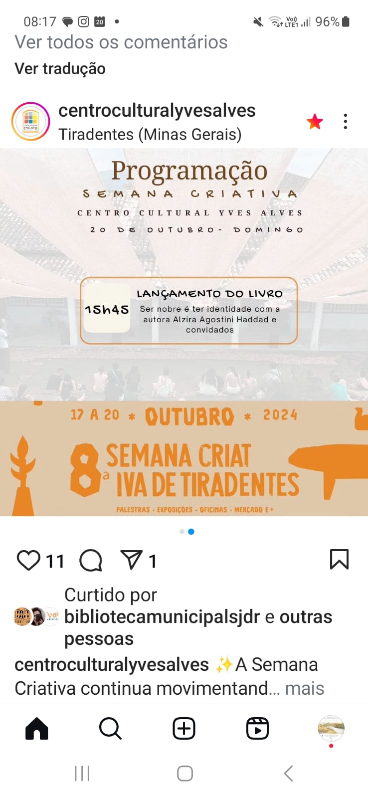VER IMAGENS DO LANÇAMENTO DO LIVRO SER NOBRE É TER IDENTIDADE/SEMANA CRIATIVA DE TIRADENTES 2024