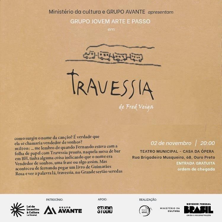 Espetáculo "Travessia" no Teatro Municipal de Ouro Preto . Evento Gratuito