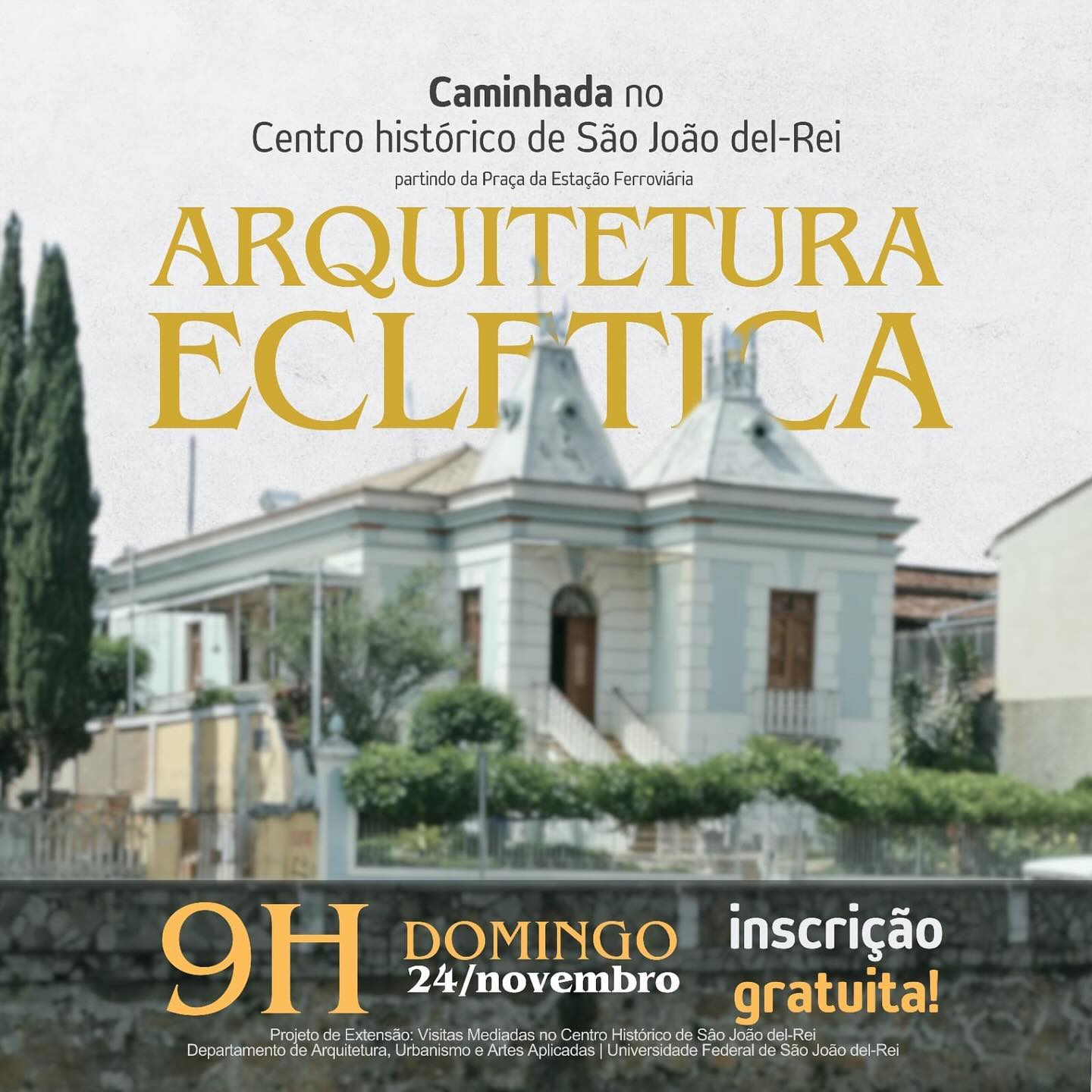Neste domingo dia 24 de novembro, o projeto de extensão “Visitas Mediadas ao Centro Histórico de São João del-Rei”, do departamento de Arquitetura da UFSJ convida a todos para uma caminhada sobre arquitetura eclética. Durante o passeio, serão abordados temas como o ecletismo, a ferrovia e as transformações urbanas da cidade.