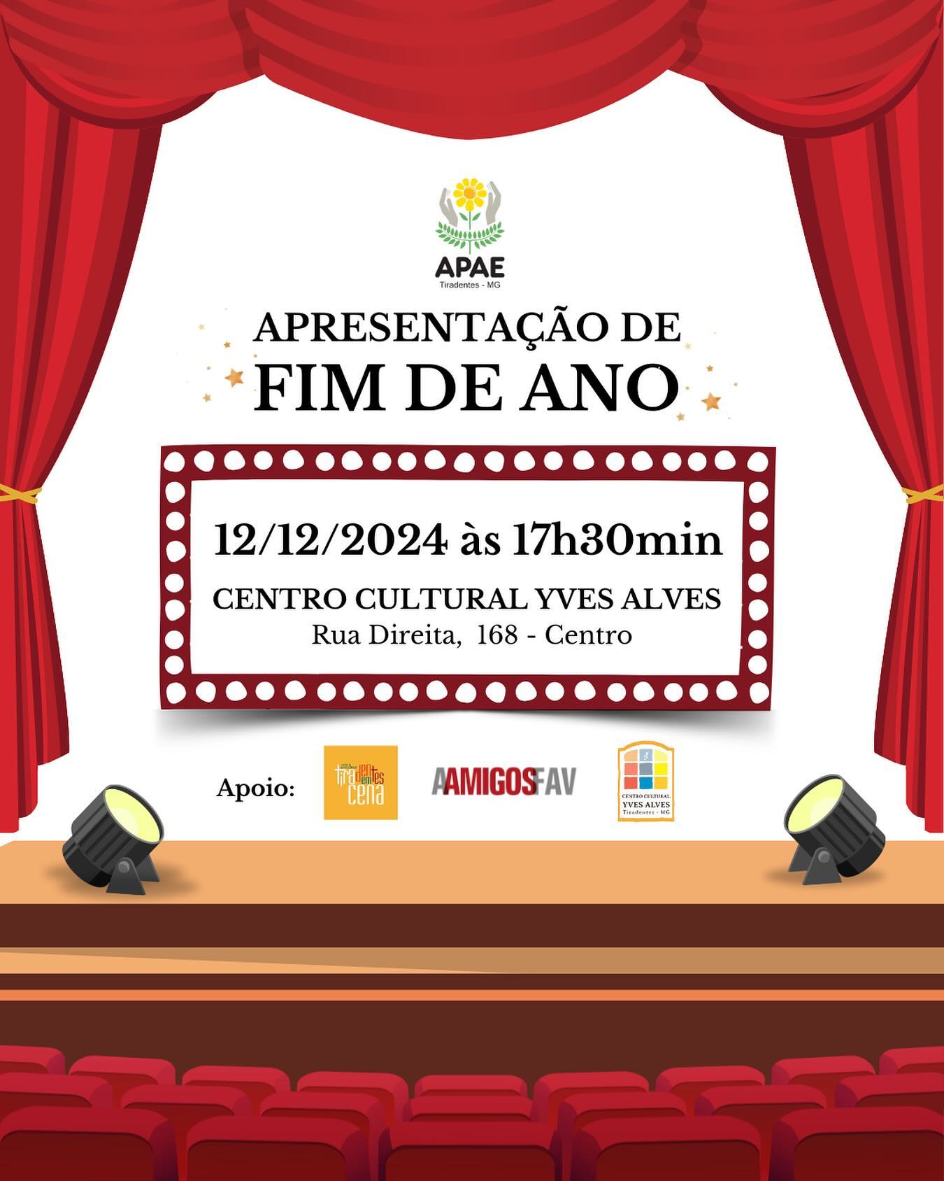 A APAE, em parceria com o Tiradentes em Cena e o Festival Artes Vertentes, encerra o ano de 2024 com a Mostra de Talentos em homenagem aos seus 25 anos de história. O evento acontecerá no dia 12 de dezembro, quinta-feira, às 17h30, no Centro Cultural Yves Alves, em Tiradentes.