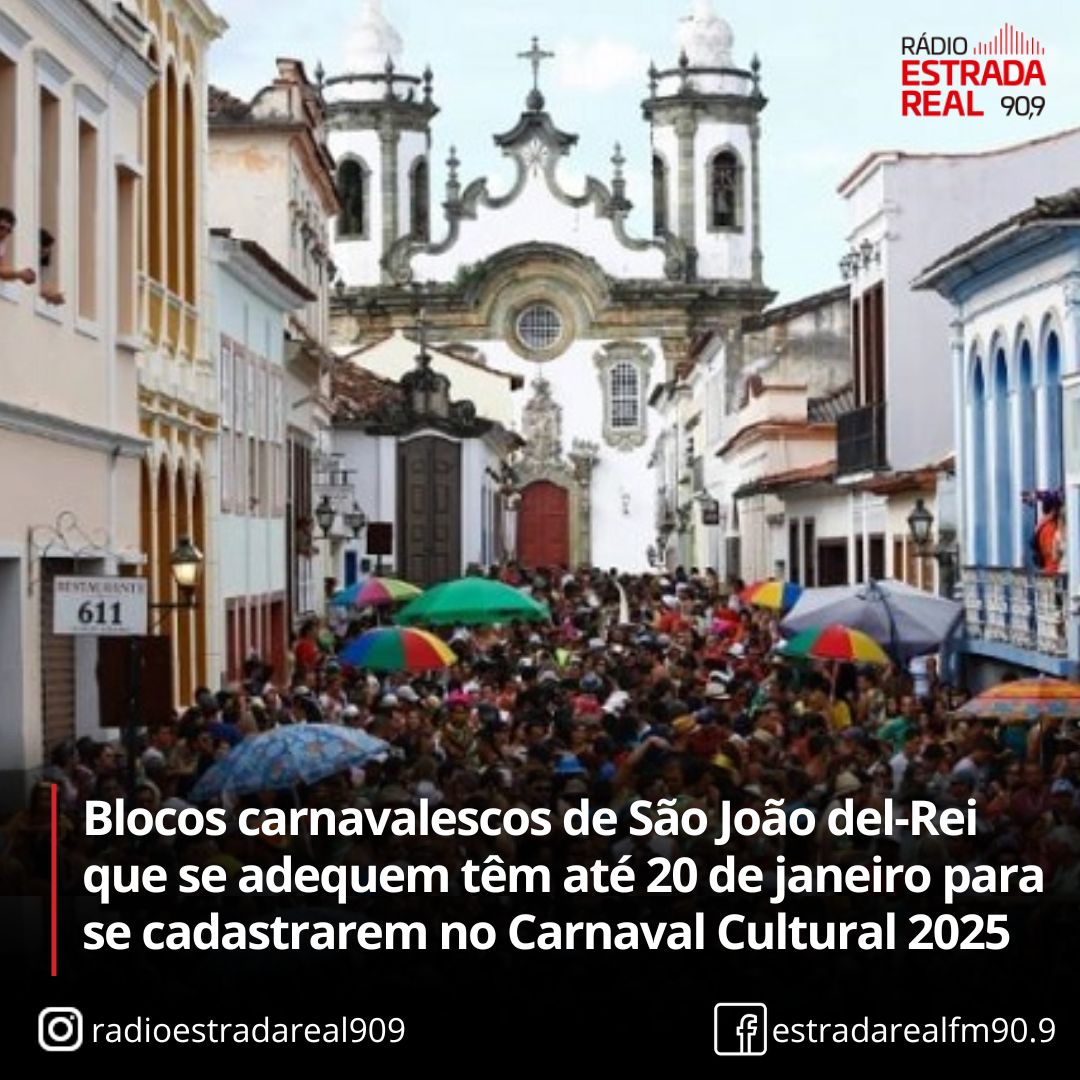 O Carnaval Cultural de São João del-Rei 2025 ocorrerá entre 21 de fevereiro e 4 de março de 2025, com encerramento na terça-feira de carnaval. O evento, promovido pela Secretaria Municipal de Cultura e Turismo (Secult), tem como objetivo resgatar a essência dos blocos tradicionais e promover um carnaval mais sustentável. Somente os blocos que participaram até o ano de 2024 e que atendem aos critérios da Secretaria de Cultura e Turismo poderão participar. Em 2025, novos blocos não serão contemplados, e aqueles que se concentram sem desfilar pelas ruas poderão utilizar a infraestrutura disponível, respeitando a disponibilidade da Prefeitura.