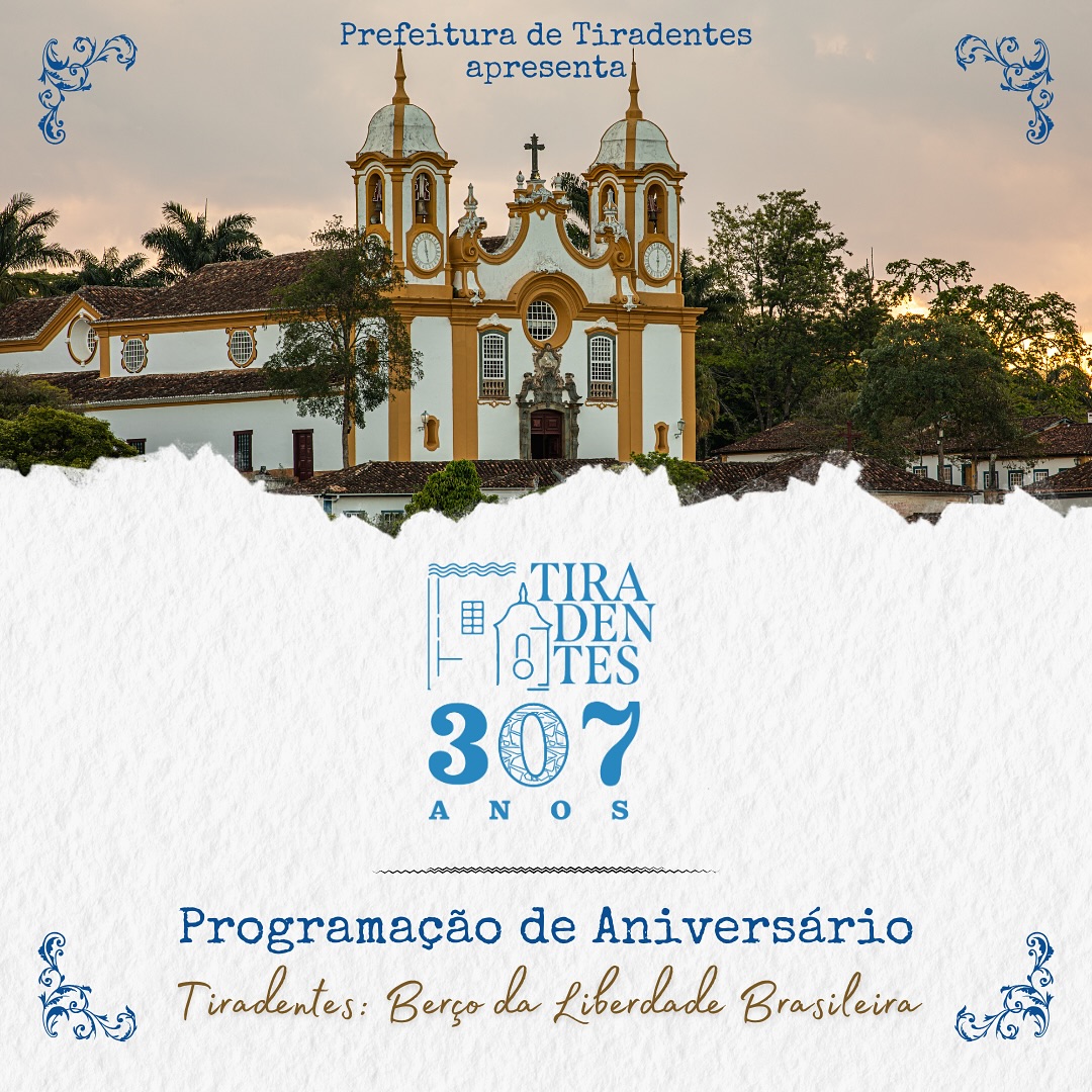 A cidade de Tiradentes celebra seus 307 anos com uma programação especial organizada pela Prefeitura de Tiradentes - Gestão 2025/2028. As atividades incluem eventos culturais, esportivos, cívicos e turísticos, com o objetivo de envolver moradores e visitantes. A programação homenageia a história da cidade, reconhecida como o Berço da Liberdade Brasileira, e presta tributo ao legado de luta e resistência do Alferes Tiradentes.