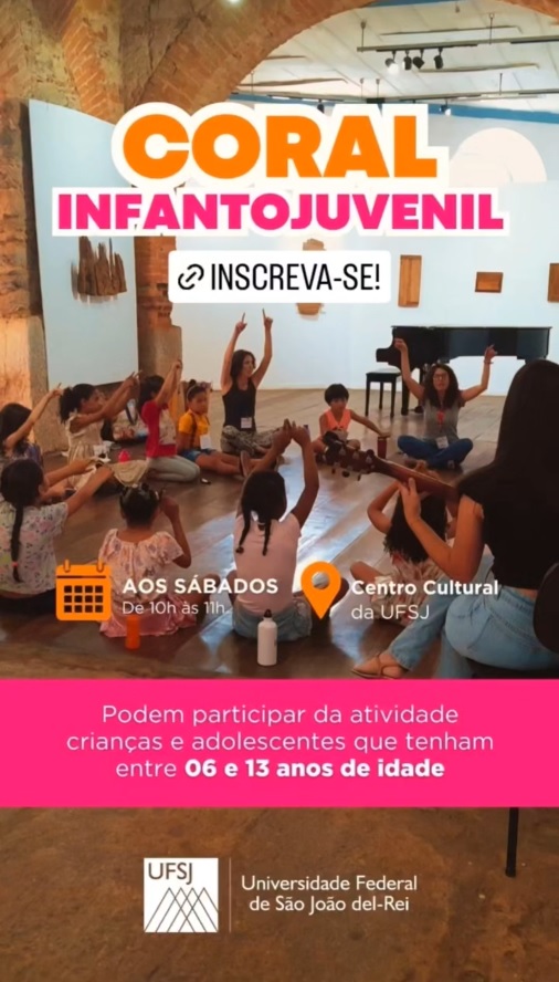 As inscrições podem ser feitas pelo link disponível no perfil @musica.ufsj no Instagram. O coral é uma oportunidade para o desenvolvimento musical, social e expressivo das crianças.