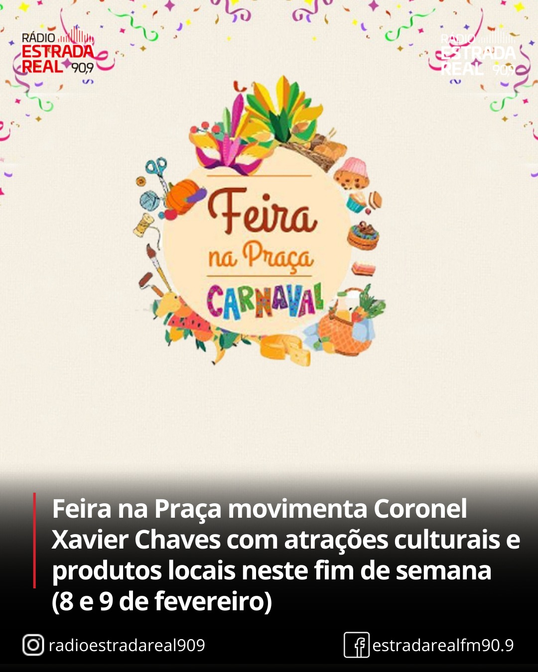 Nos dias 8 e 9 de fevereiro, a Praça Eduardo Chaves, em Coronel Xavier Chaves, recebe a Feira na Praça, evento que reúne cultura, lazer e incentivo ao empreendedorismo local. A programação inclui estandes de vendas com produtos regionais, atrações musicais e atividades para toda a família.