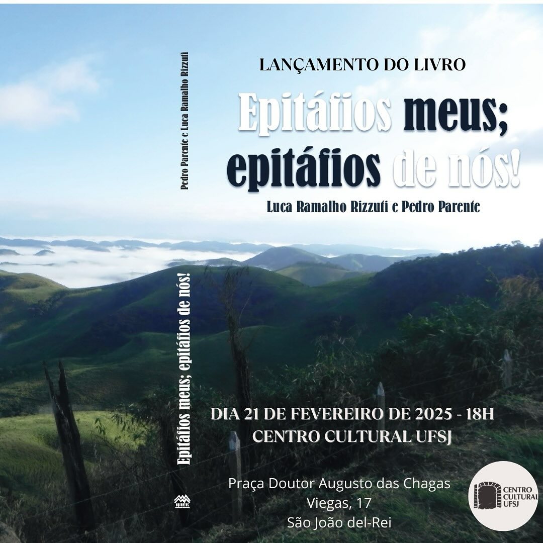 O lançamento do livro "Epitáños meus; epitáfios de nós!", escrito por Luca Ramalho Rizzuti e Pedro Parente, acontecerá no dia 21 de fevereiro, às 18h, no Centro Cultural da UFSJ (Solar da Baronesa). A obra reúne crônicas, contos, textos críticos cinematográficos e ensaios pessoais, explorando diferentes perspectivas sobre o tempo e a memória. Os autores refletem sobre suas vivências e legados, marcando suas presenças em épocas distintas.