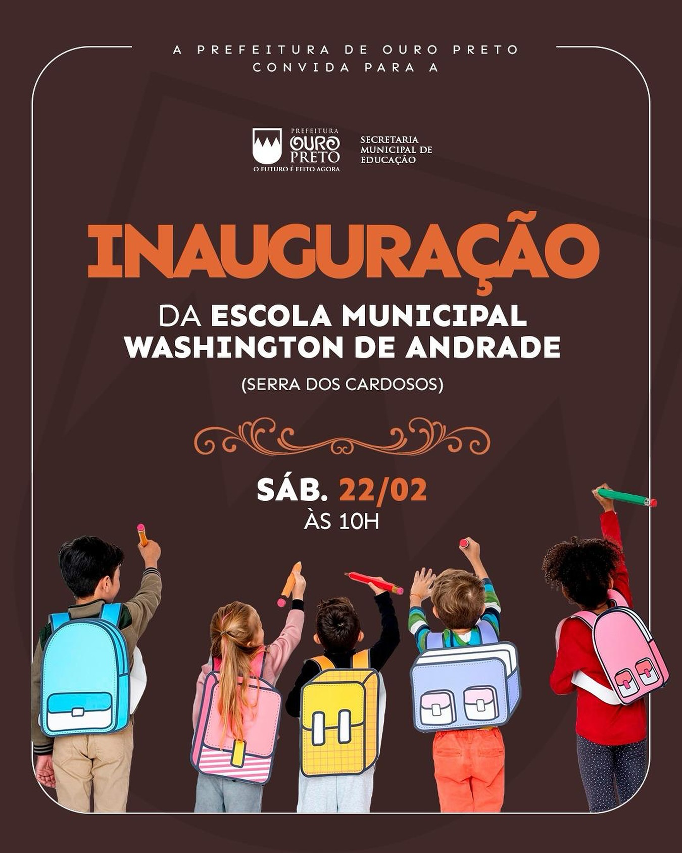 A Secretaria Municipal de Educação realizará a inauguração da reforma da Escola Municipal Washington de Andrade, situada na Serra dos Cardosos, subdistrito de Santa Rita. A cerimônia será no sábado, 22 de fevereiro, às 10h, e contará com a presença de autoridades e membros da comunidade.