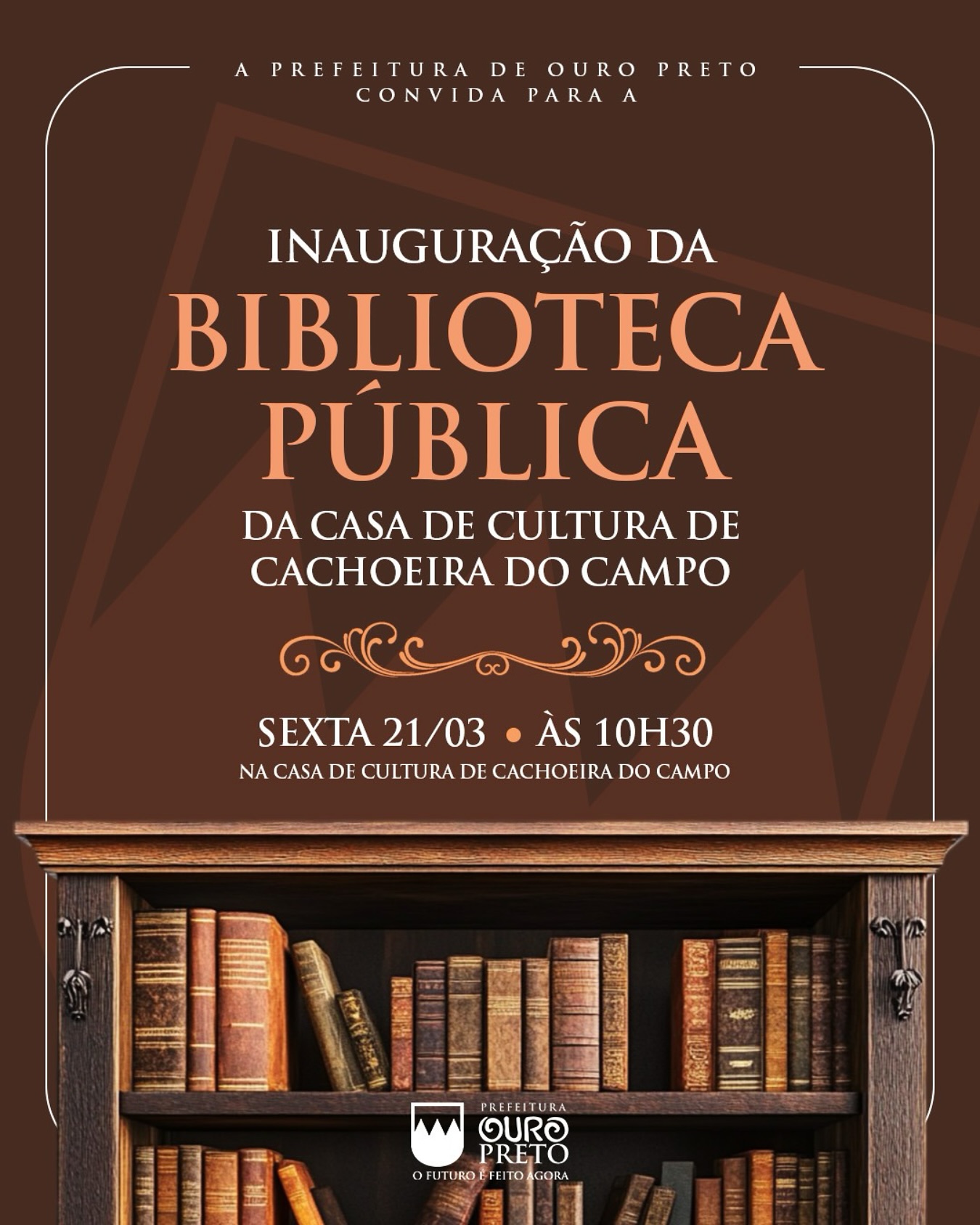 A Biblioteca Pública de Cachoeira do Campo será inaugurada no dia 21 de março, às 10h30, na Casa de Cultura de Cachoeira do Campo. O evento marca um importante avanço para a cultura local, oferecendo um novo espaço dedicado à leitura, pesquisa e preservação da história da região.