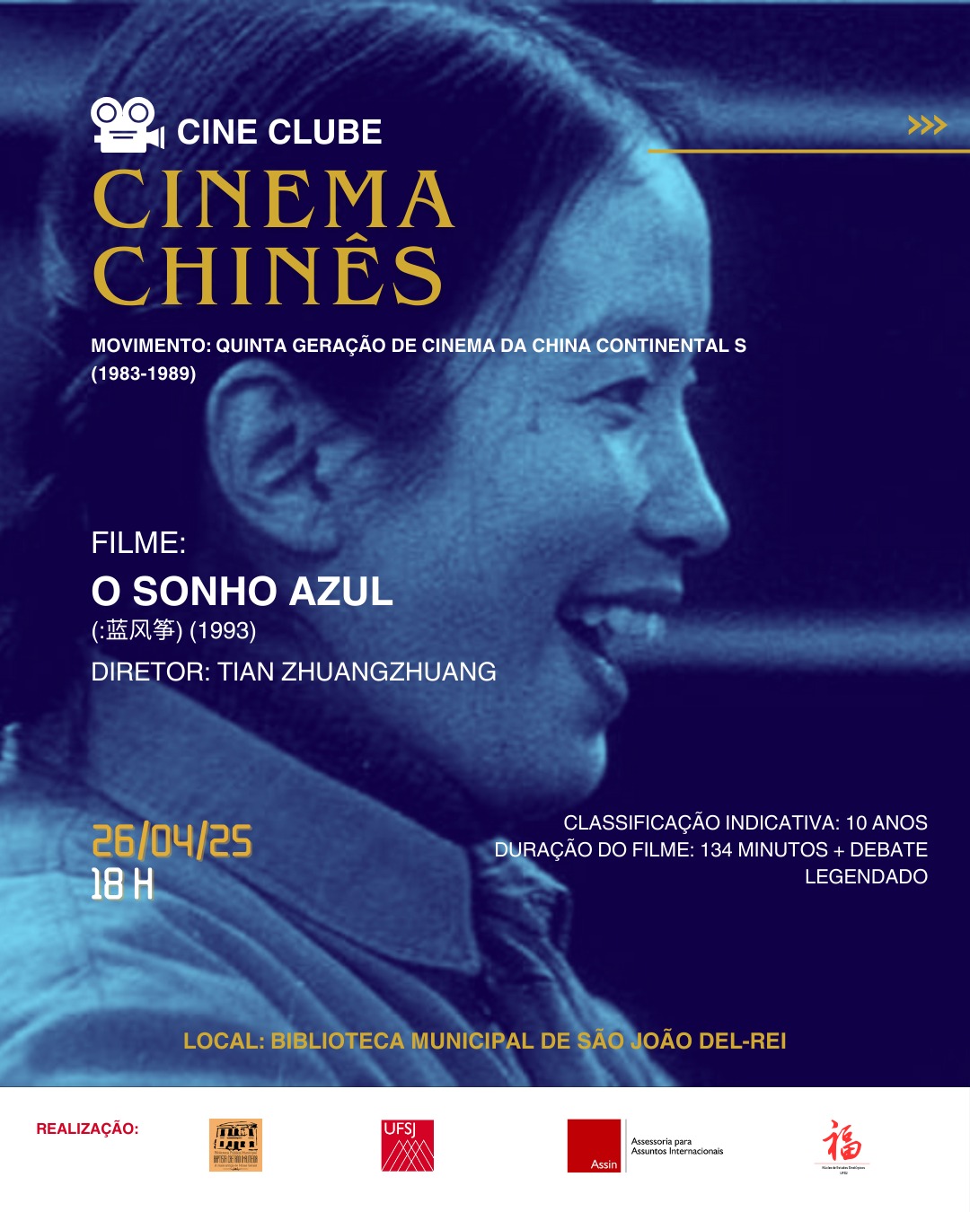 O Cine Clube Cinema Chinês retorna com a exibição do filme “O Sonho Azul” (Lan Feng Zheng), dirigido por Tian Zhuangzhuang, no dia 26 de abril de 2025, às 18h, na Biblioteca Municipal de São João del-Rei. O longa, lançado em 1993, é considerado parte do movimento cinematográfico conhecido como Quinta Geração do Cinema da China Continental (1983–1989), apesar de sua data posterior. O evento é gratuito e a classificação indicativa é de 10 anos.