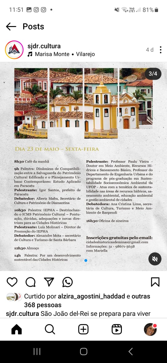 Esteja sempre atualizado do que acontece em São João del-Rei, Tiradentes, Ouro Preto e região. Registre gratuitamente a sua agenda cultural, seminário, evento, palestras, o seu trabalho, sua pesquisa, artigo etc | Contribua com fotos, dados, atualizações e acervo: todos os créditos e colaborações serão registrados.