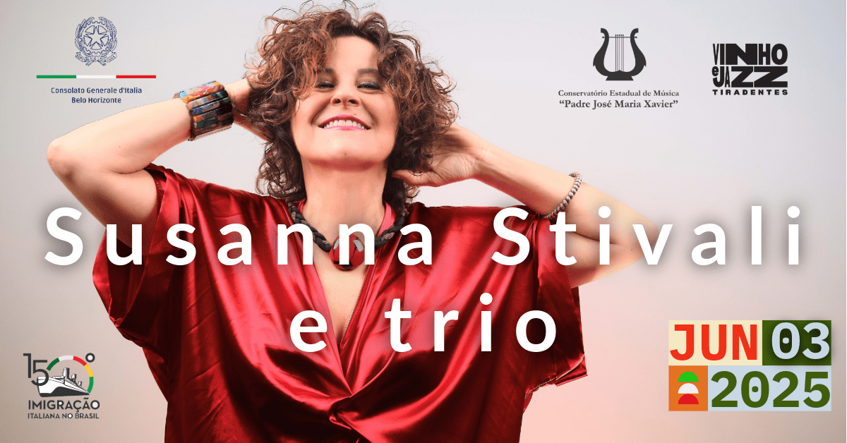 O concerto “Susanna Stivali celebra intercâmbio musical ítalo-brasileiro” acontece no dia 3 de junho de 2025, às 19h30, no Conservatório Estadual de Música Padre José Maria Xavier, em São João del-Rei. O evento integra as comemorações da Festa della Repubblica Italiana e conta com a parceria do Festival Vinho e Jazz - Tiradentes, com realização do Consulado Geral da Itália em Belo Horizonte e da Benguela Produções. A entrada é gratuita.