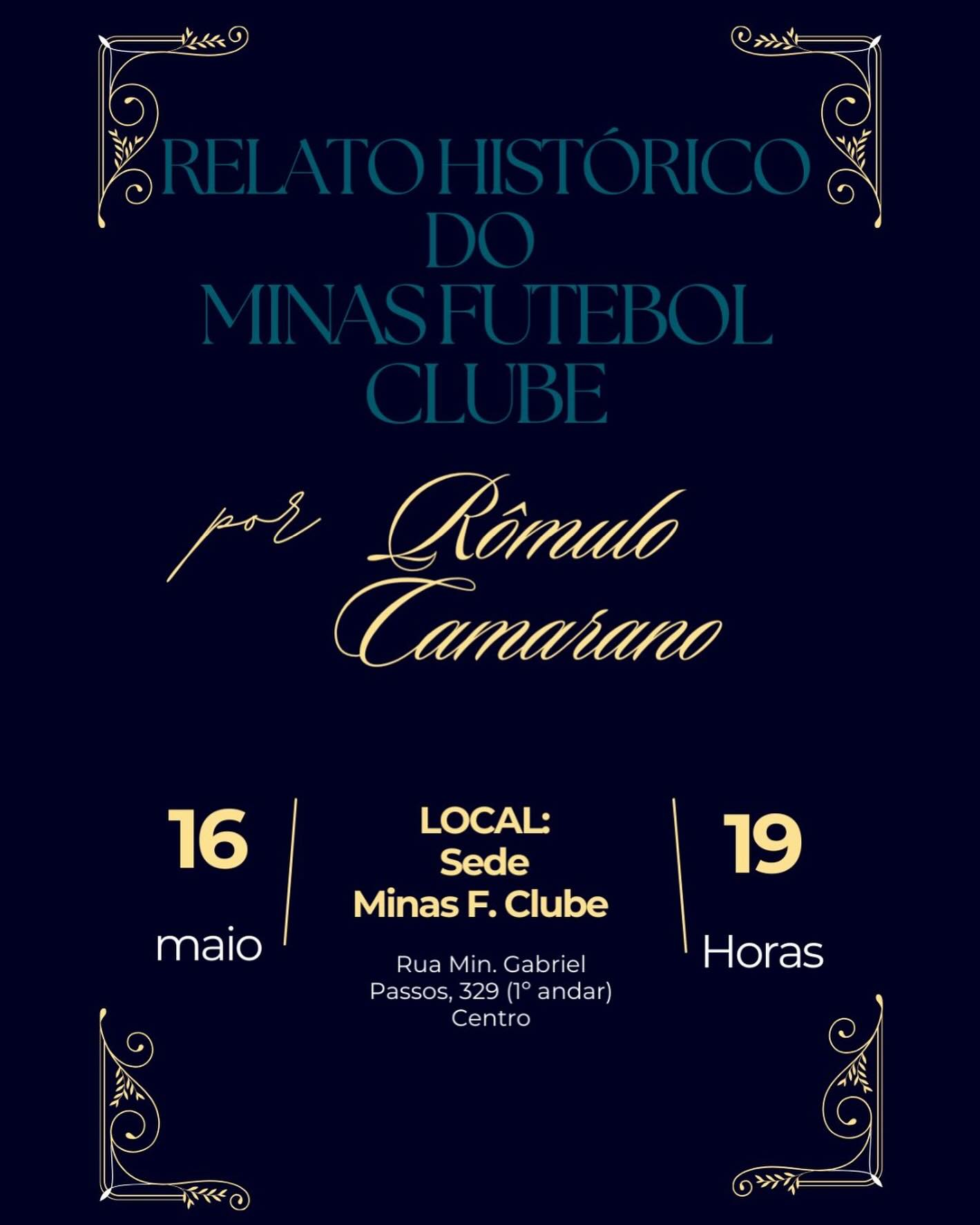 O lançamento do livro "Relato Histórico do Minas Futebol Clube", de Rômulo Camarano, acontece no dia 16 de maio de 2025, às 19h, no Minas Esporte Clube – Salão dos Espelhos (Edifício São João), em São João del-Rei (MG). O evento contará com a presença do autor e uma sessão de autógrafos aberta ao público.