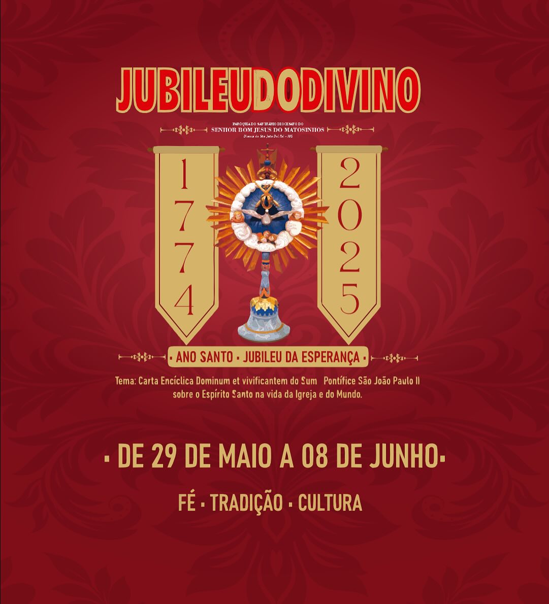 A cobertura completa do Jubileu será realizada pelo projeto Mapa do Patrimônio, com patrocínio do Pátio Matosinhos, localizado na Avenida Josué de Queirós, 332, Matosinhos, e apoio da Secretaria Municipal de Cultura e Turismo de São João del-Rei. O tema deste ano é inspirado na Carta Encíclica Dominum et Vivificantem, de São João Paulo II, sobre o Espírito Santo na vida da Igreja e do mundo.