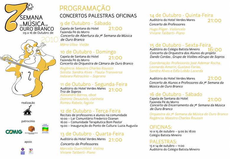 7ª Semana de Música de Ouro Branco . 09 a 16 de outubro