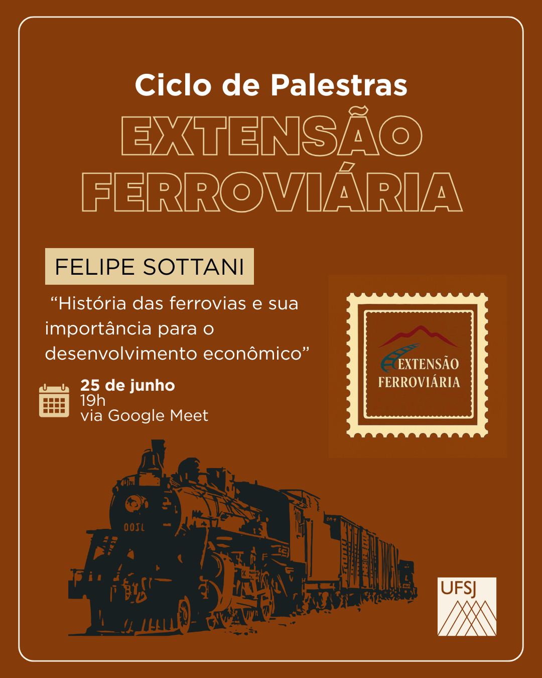 Felipe Sottani é especialista na área ferroviária, com pós-graduação em Gestão de Pessoas e Liderança. Sua experiência inclui atuação em áreas técnicas e operacionais, como manutenção de locomotivas, vagões, via permanente, sinalização, além de planejamento e controle da manutenção (PCM) e operações ferroviárias em diferentes regiões do país. Durante a palestra, o convidado abordará a trajetória histórica das ferrovias no Brasil e discutirá os impactos econômicos do setor.