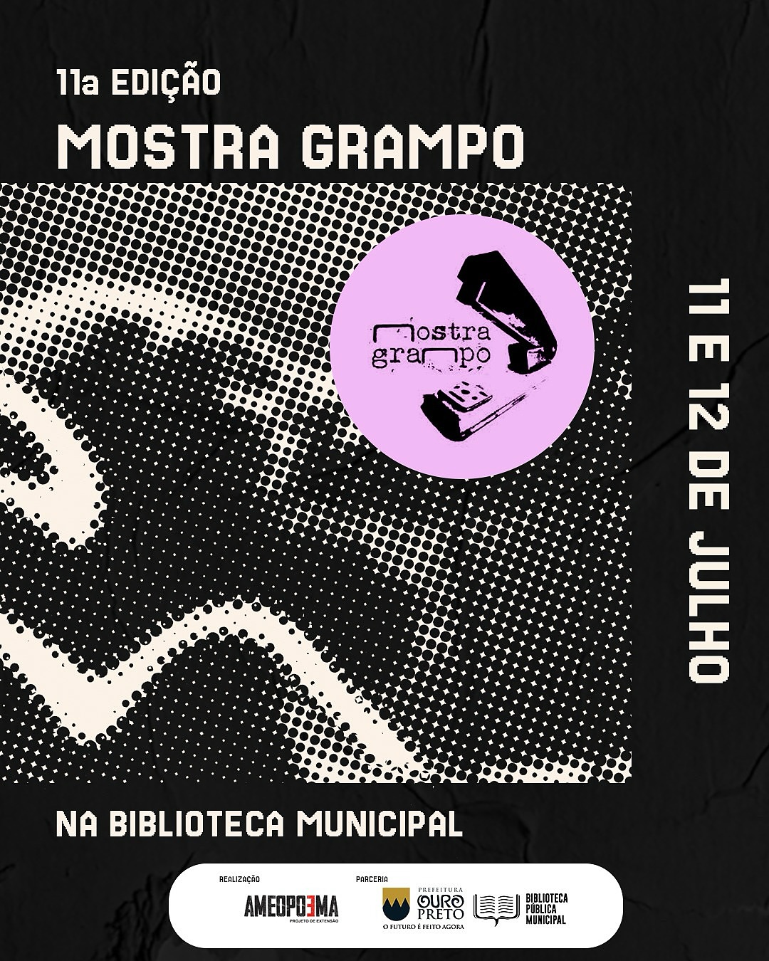 A Mostra Grampo 2025 será realizada nos dias 11 e 12 de julho, com atividades gratuitas na Biblioteca Pública de Ouro Preto e em espaços parceiros. Em sua 11ª edição, o evento celebra 10 anos de encontros, arte e resistência por meio da produção e difusão dos fanzines, publicações independentes de tiragem limitada e conteúdo autoral. A mostra é uma parceria com o projeto Ame o Poema.