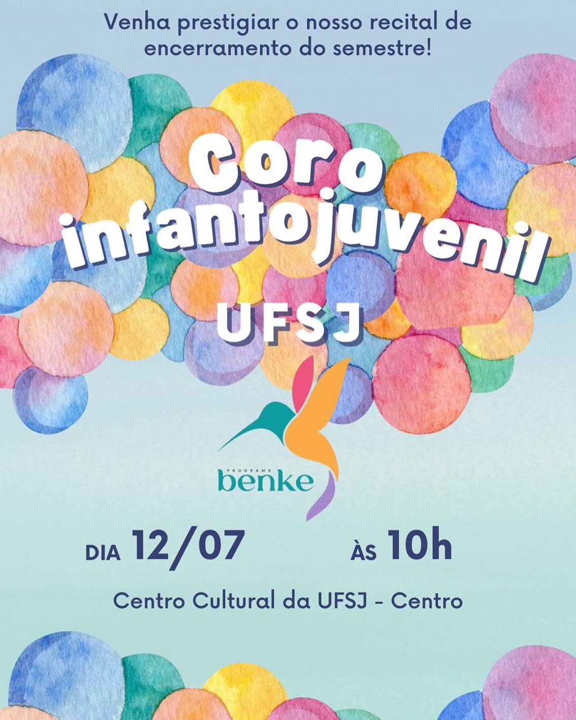 O Recital de Encerramento de Semestre do Coro Infantojuvenil da UFSJ acontece neste sábado, 12 de julho de 2025, às 10h, no Centro Cultural da Universidade Federal de São João del-Rei (MG). A apresentação marca o encerramento das atividades do primeiro semestre e é uma oportunidade para o público prestigiar o trabalho desenvolvido pelas crianças e adolescentes participantes do projeto.