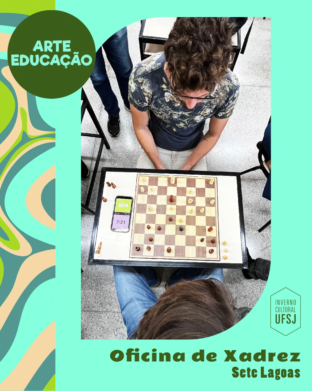 A oficina é gratuita, com vagas limitadas, e os participantes devem levar seu próprio tabuleiro de xadrez. As inscrições podem ser feitas no site oficial: invernocultural.ufsj.edu.br/oficina/15. Para mais informações sobre a programação completa, acesse o Instagram do evento: @invernoculturalufsj.