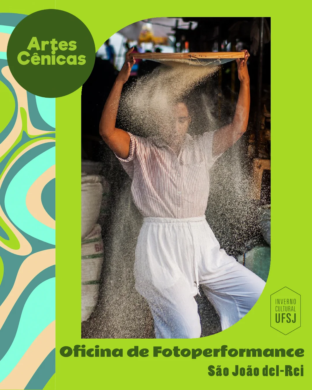A Oficina de Fotoperformance, ministrada por Jéssica Lemos, será realizada nos dias 30 e 31 de julho de 2025, às 14h, no Centro de Referência Musicológica José Maria Neves (CEREM), localizado na Rua Marechal Bittencourt, 24, Centro, em São João del-Rei (MG). A atividade integra a programação do Inverno Cultural UFSJ 2025, evento gratuito promovido pela Universidade Federal de São João del-Rei entre 26 de julho e 3 de agosto em quatro municípios mineiros.