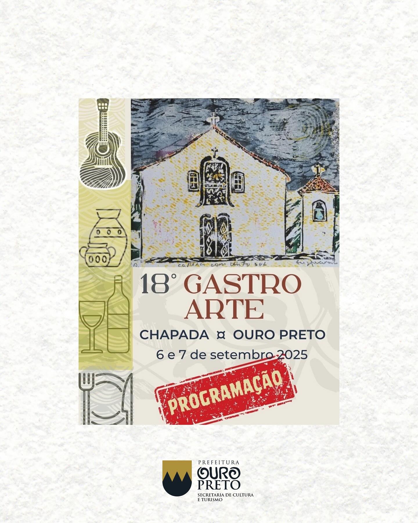O 18º GastroArte – Festival de Gastronomia da Chapada acontece nos dias 6 e 7 de setembro de 2025, no subdistrito da Chapada, em Ouro Preto (MG). O evento reúne tradição, cultura e gastronomia, oferecendo aos visitantes uma imersão nos sabores e saberes locais. A iniciativa tem como objetivo valorizar a culinária mineira e as manifestações artísticas da região, atraindo tanto moradores quanto turistas.