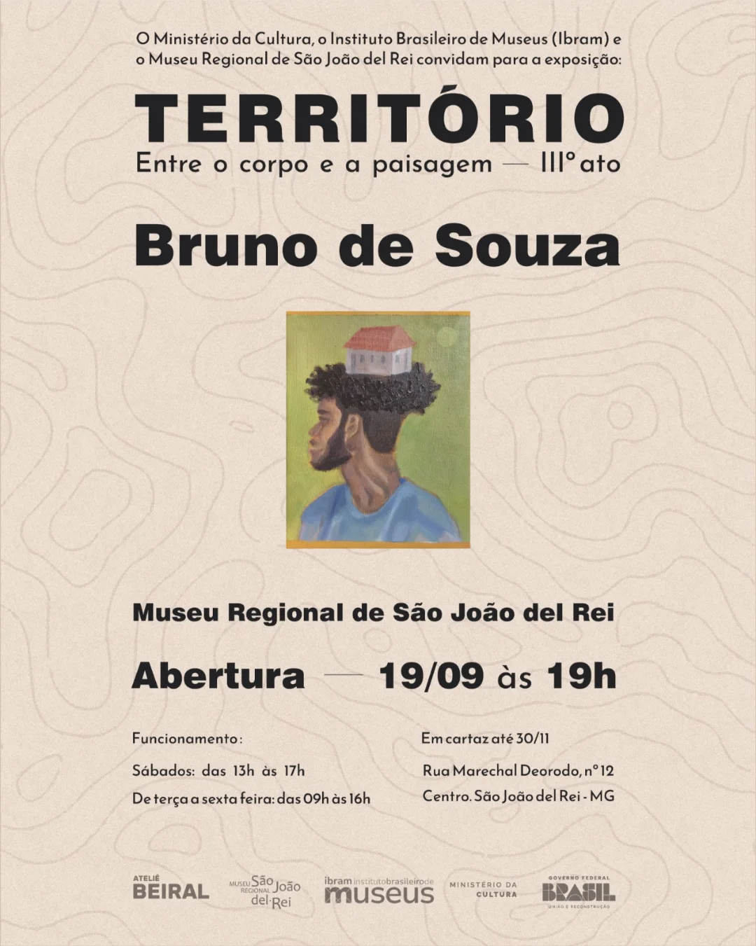A exposição “Território: entre o corpo e a paisagem”, do artista plástico Bruno Henrique de Souza, será inaugurada no Museu Regional de São João del-Rei em 19 de setembro de 2025, às 19h. A mostra integra a programação da 19ª Primavera dos Museus (confira a programação completa), organizada pelo Instituto Brasileiro de Museus (Ibram), e permanece aberta à visitação entre os dias 20 de setembro e 30 de novembro de 2025, com entrada gratuita.