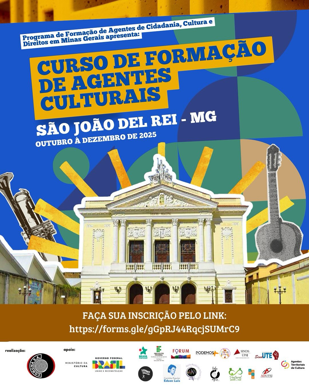 Para mais informações sobre o Curso de Formação de Agentes Culturais em São João del-Rei, acompanhe a Frente Brasil Popular SJDR no Instagram.