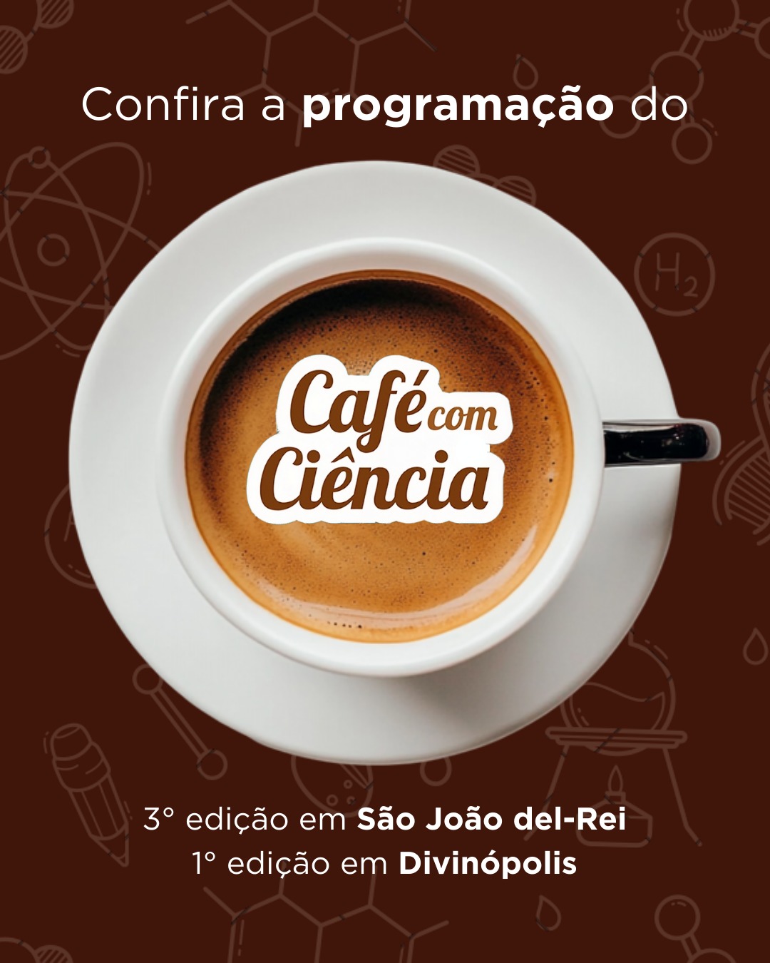O Café com Ciência chega à sua 3ª edição em São João del-Rei e realiza pela primeira vez uma edição em Divinópolis. O evento é voltado para a divulgação científica por meio de oficinas e pôsteres, promovendo o contato direto entre pesquisadores e a comunidade. A proposta é aproximar a sociedade da ciência produzida na universidade e estimular o diálogo sobre tecnologia e inovação.