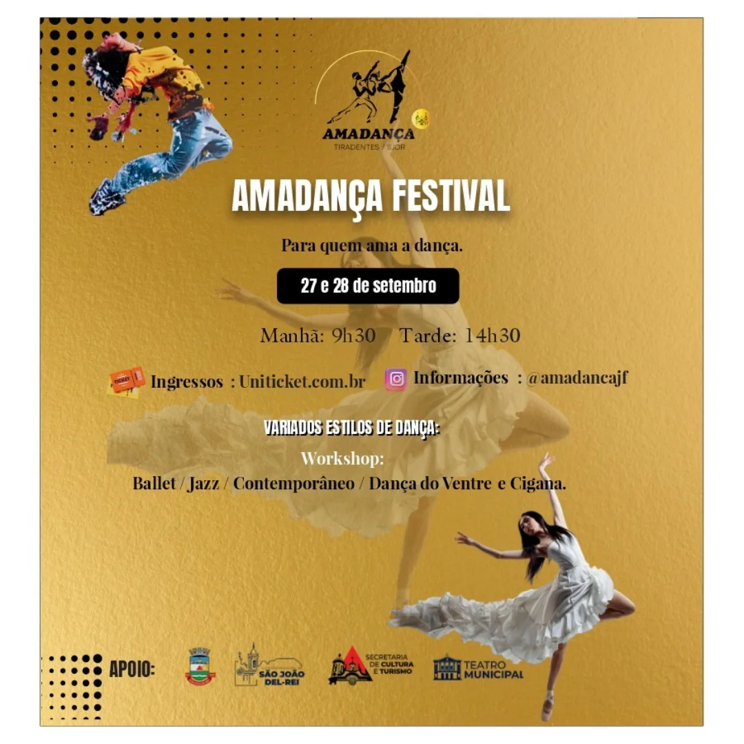 O Festival Amadança será realizado nos dias 27 e 28 de setembro de 2025, no Teatro Municipal de São João del-Rei. O evento reúne diferentes atividades ligadas à dança e à cultura, com entrada aberta ao público.