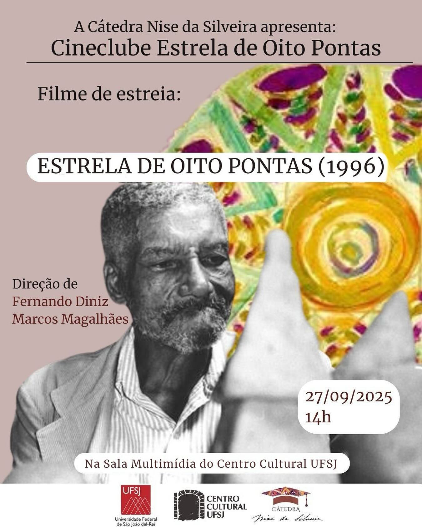 A sessão de lançamento exibirá o filme “Estrela de Oito Pontas” (1996), dirigido por Fernando Diniz e Marcos Magalhães. A iniciativa é organizada pela Cátedra Nise da Silveira em parceria com a Universidade Federal de São João del-Rei (UFSJ), buscando promover debates e ampliar o acesso ao cinema e às artes visuais.