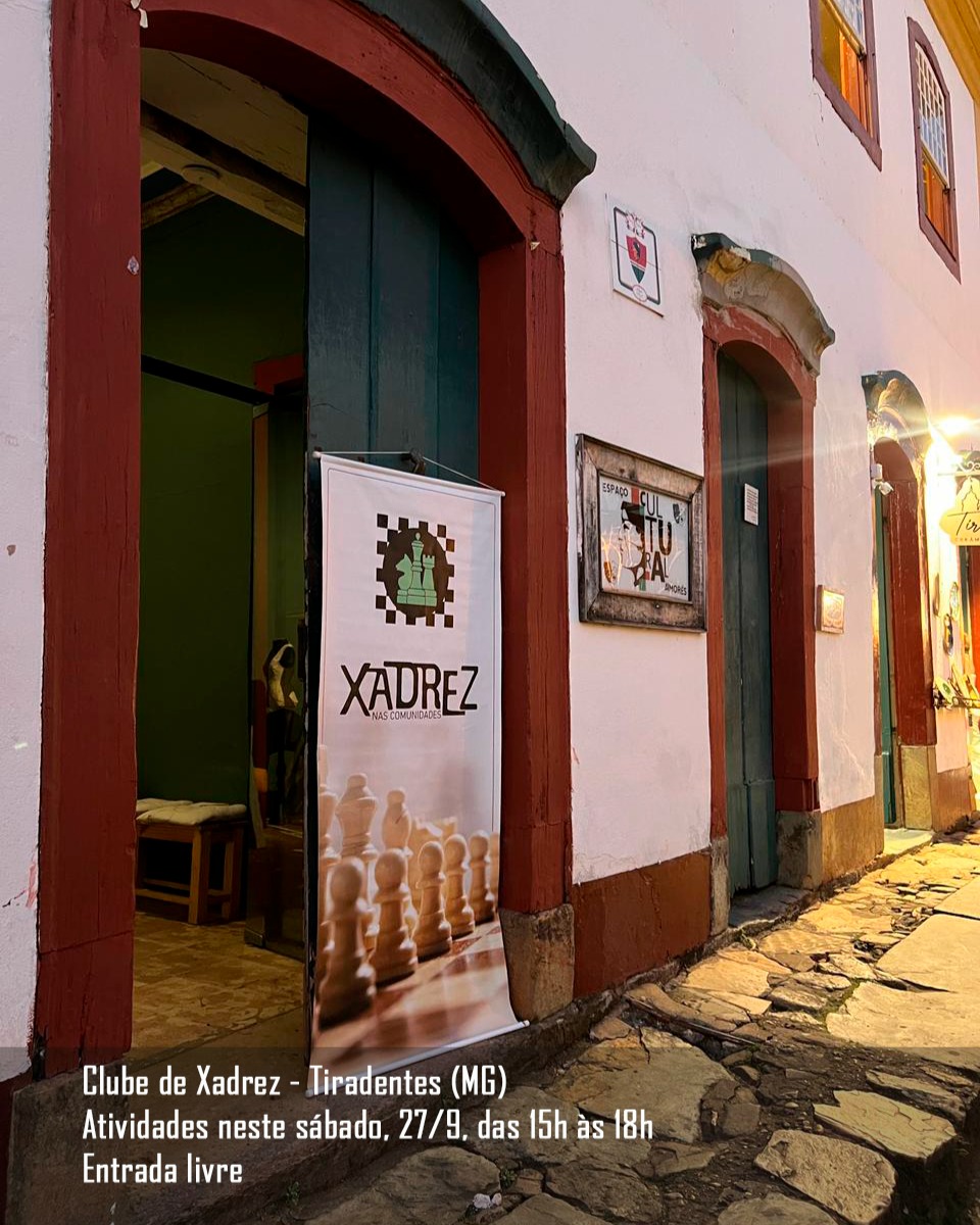 O Xadrez na Comunidade acontece no sábado, 27 de setembro, no Espaço Cultural Aimorés, localizado na Rua Direita, 159, em frente ao Centro Cultural Yves Alves, no centro histórico de Tiradentes (MG). O evento é promovido pelo Clube de Xadrez de Tiradentes e pelo programa de extensão Xadrez nas Comunidades, da UFSJ, oferecendo atividades para pessoas de todas as idades e níveis de conhecimento.