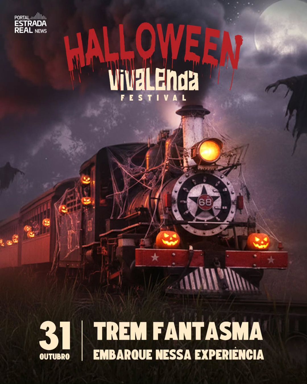O Trem Fantasma da Maria Fumaça promete uma noite inesquecível em 31 de outubro de 2025, marcando o início do Festival Viva a Lenda, em Tiradentes (MG). A tradicional locomotiva turística ganha uma versão temática e sombria para celebrar o Halloween com arte, gastronomia e música, em um evento que mistura o charme histórico da ferrovia com o clima de mistério e diversão.