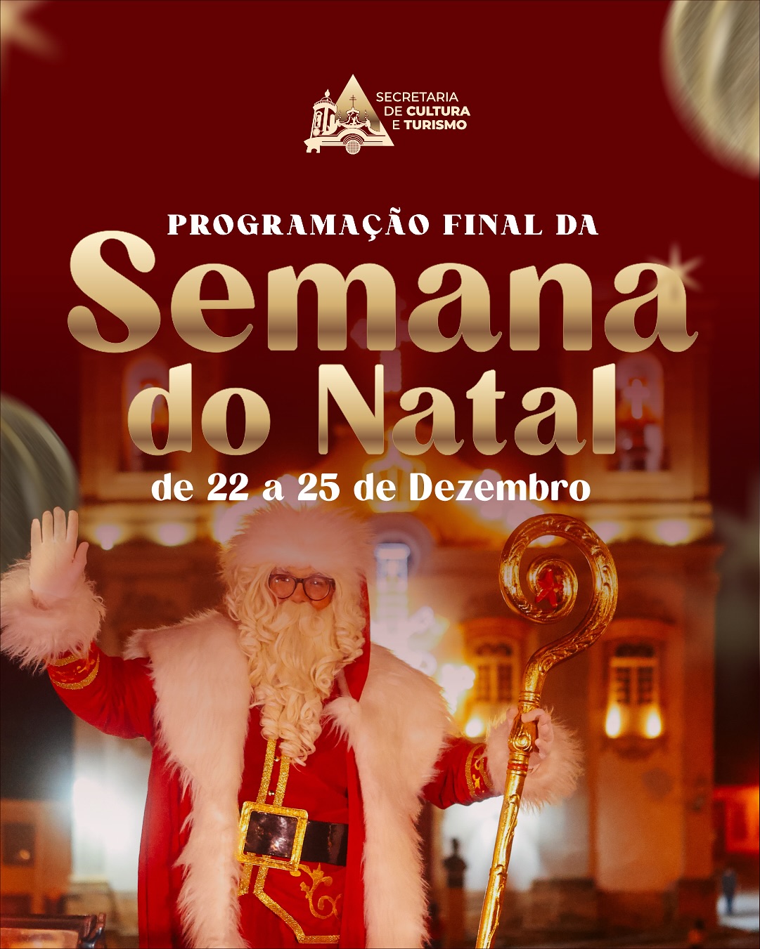 A Programação Final da Semana do Natal em São João del-Rei marca o encerramento das celebrações natalinas promovidas ao longo dos meses de novembro e dezembro na cidade. Realizada pela Prefeitura de São João del-Rei, por meio da Secretaria Municipal de Cultura e Turismo, a programação reúne apresentações musicais, cortejos e celebrações religiosas, reforçando o caráter cultural e comunitário do período natalino.