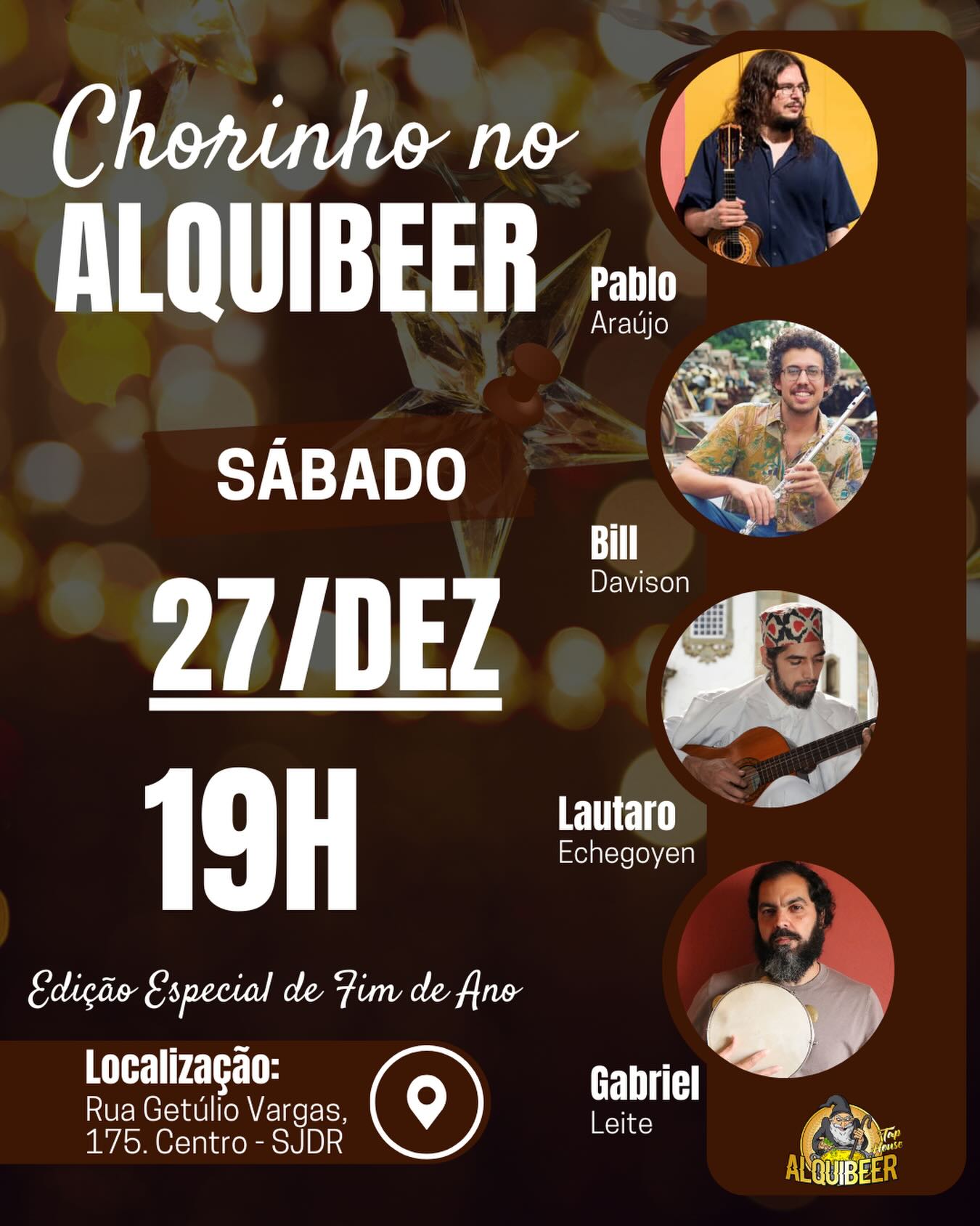 O Chorinho no Alquibeer — Edição Especial de Fim de Ano marca o encerramento da programação musical do espaço em São João del-Rei, reunindo músicos convidados em uma roda dedicada ao choro brasileiro. O evento propõe um encontro informal entre público e artistas, valorizando a escuta coletiva e a tradição da música instrumental.