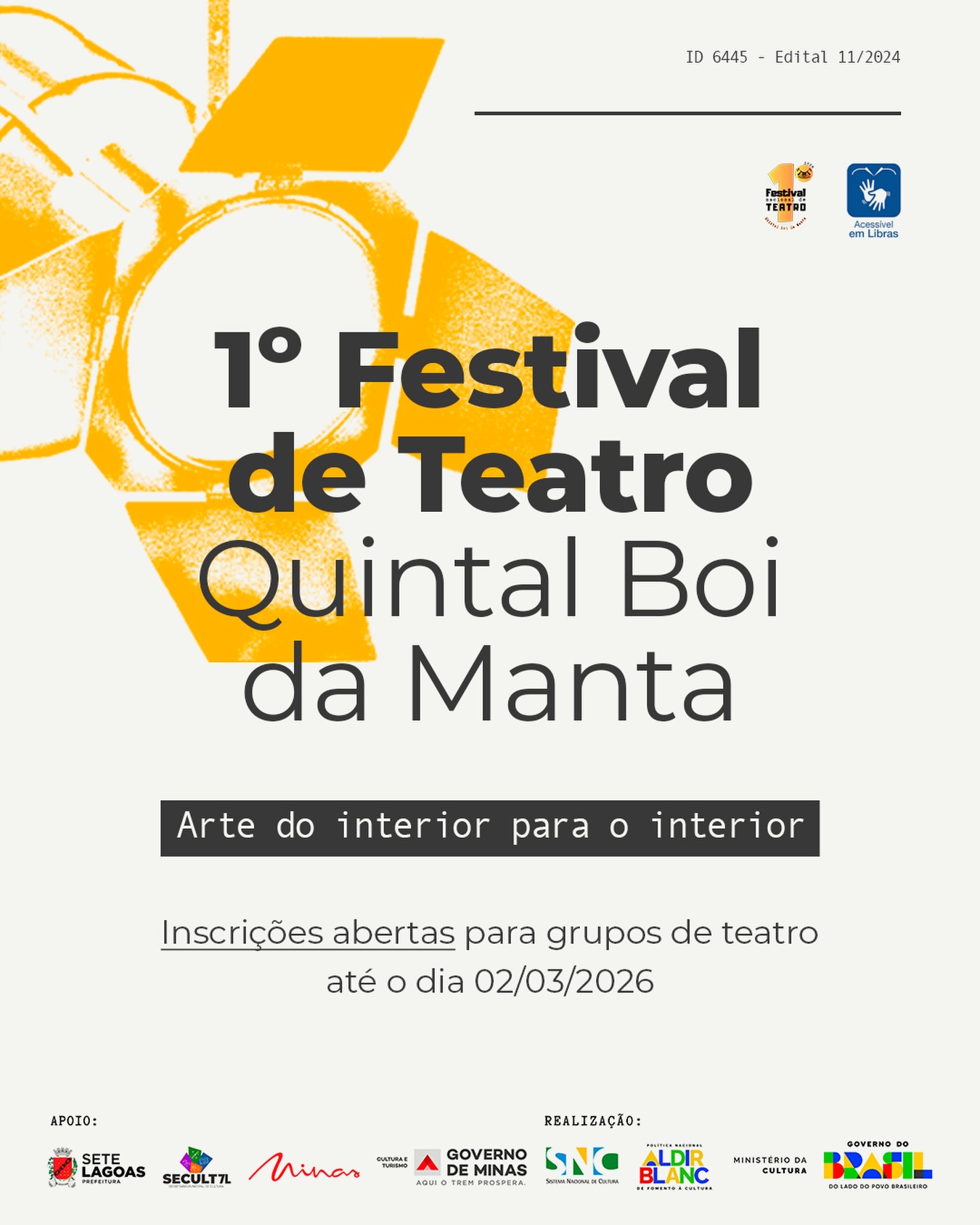 Além da programação artística, o festival está com inscrições abertas para grupos de teatro até o dia 02 de março de 2026, destinadas a coletivos interessados em integrar a programação oficial. O regulamento e o formulário de inscrição estão disponíveis nos canais oficiais do projeto.