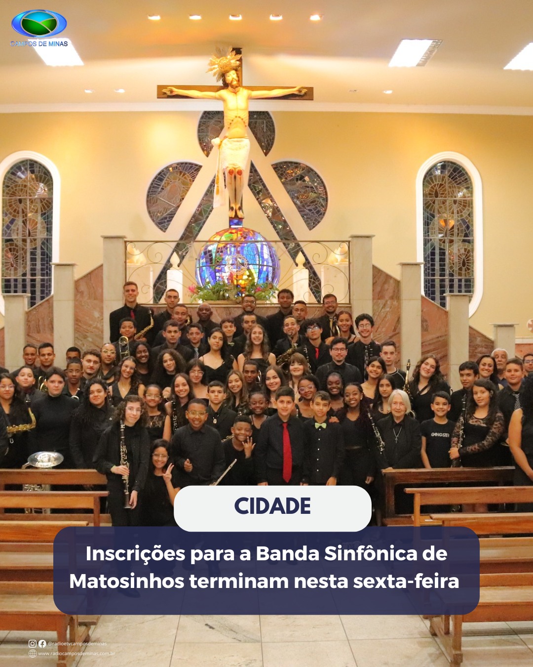 As inscrições para a Banda Sinfônica do Santuário do Senhor Bom Jesus de Matosinhos seguem abertas até sexta-feira, 13, em São João del-Rei (MG). A iniciativa é voltada a crianças a partir de 8 anos, além de adolescentes e demais interessados que tenham disponibilidade para participar das atividades do grupo, que atua de forma contínua na formação musical e cultural do município.