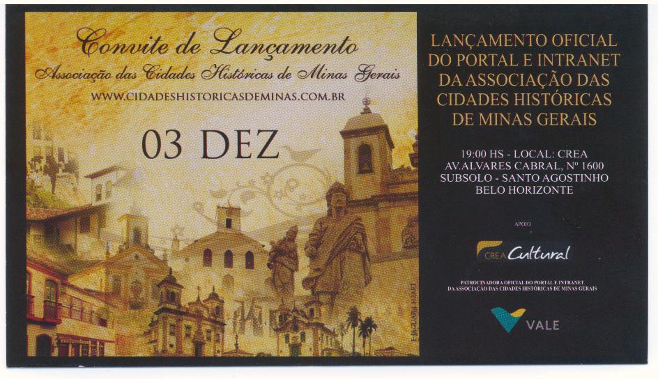 Lançamento Oficial do Portal e intranet da Associação das Cidades Históricas de Minas Gerais