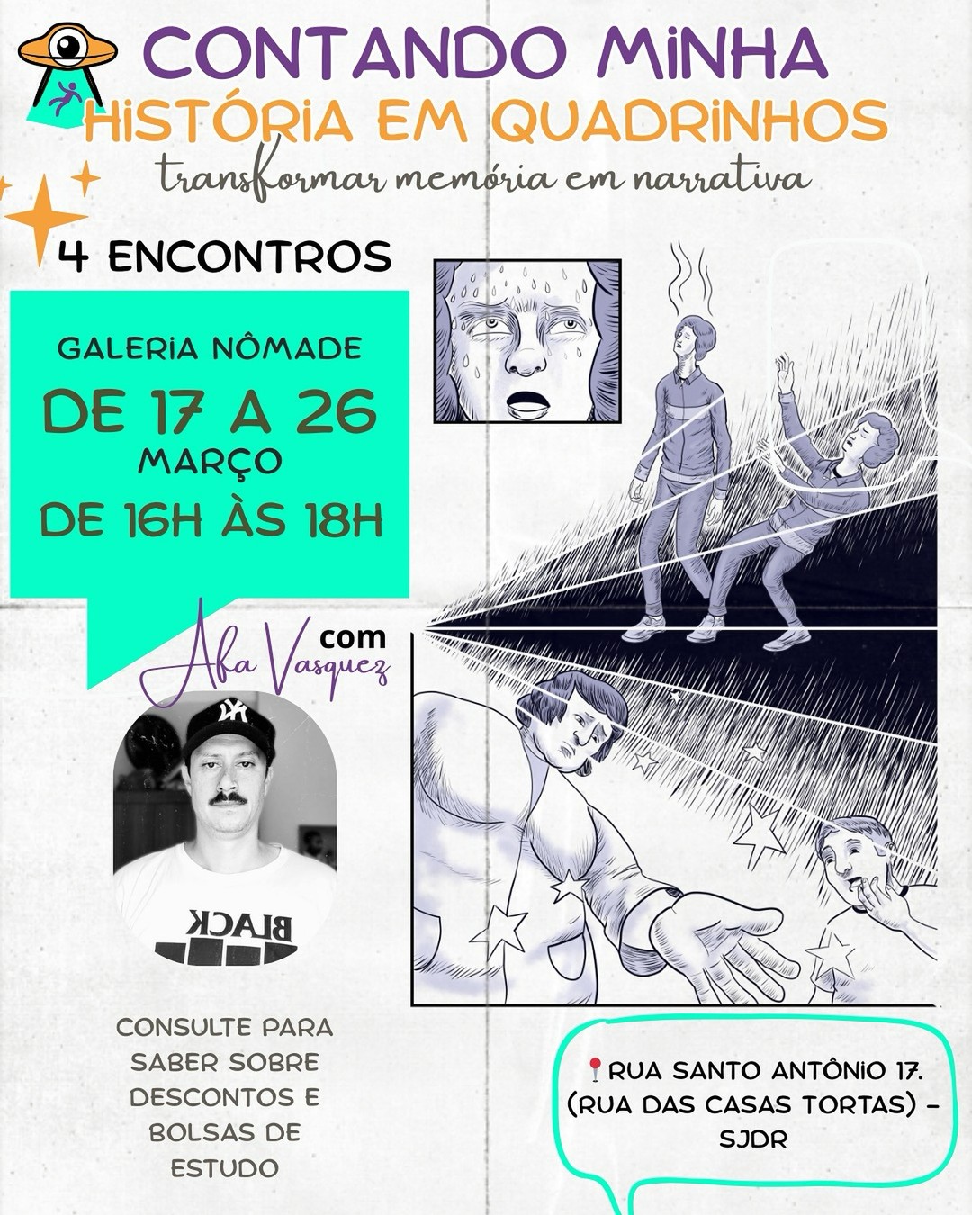 A oficina “Contando Minha História em Quadrinhos”, ministrada pelo artista Rafael Vasquez, será realizada entre os dias 17 e 26 de março, em São João del-Rei (MG). A atividade propõe uma imersão no universo dos quadrinhos autorais, abordando processos criativos, narrativa gráfica e aspectos técnicos da produção em HQs.