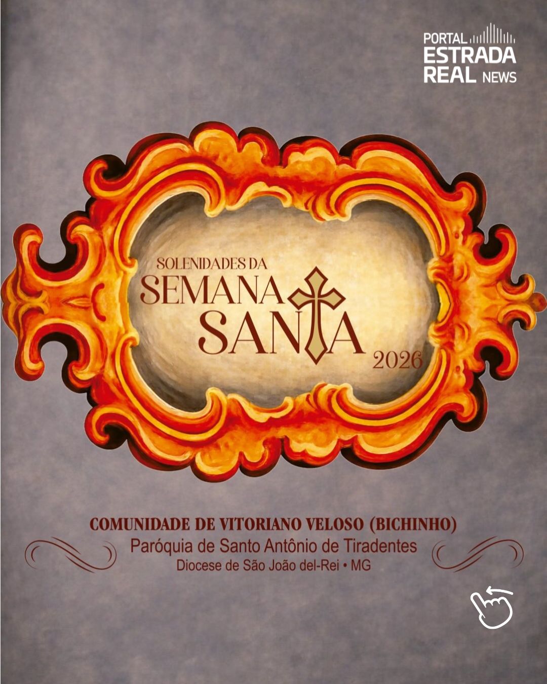 A programação da Semana Santa 2026 na Comunidade de Vitoriano Veloso (Bichinho), pertencente à Paróquia de Santo Antônio de Tiradentes, será realizada entre os dias 28 de março e 5 de abril, em Tiradentes (MG). A agenda reúne celebrações que recordam a Paixão, Morte e Ressurreição de Jesus Cristo, mantendo viva a tradição religiosa na comunidade, com procissões, missas e momentos de oração.