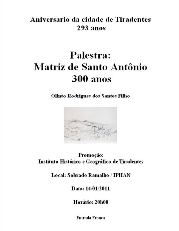Palestra . Matriz de Santo Antônio . 300 anos