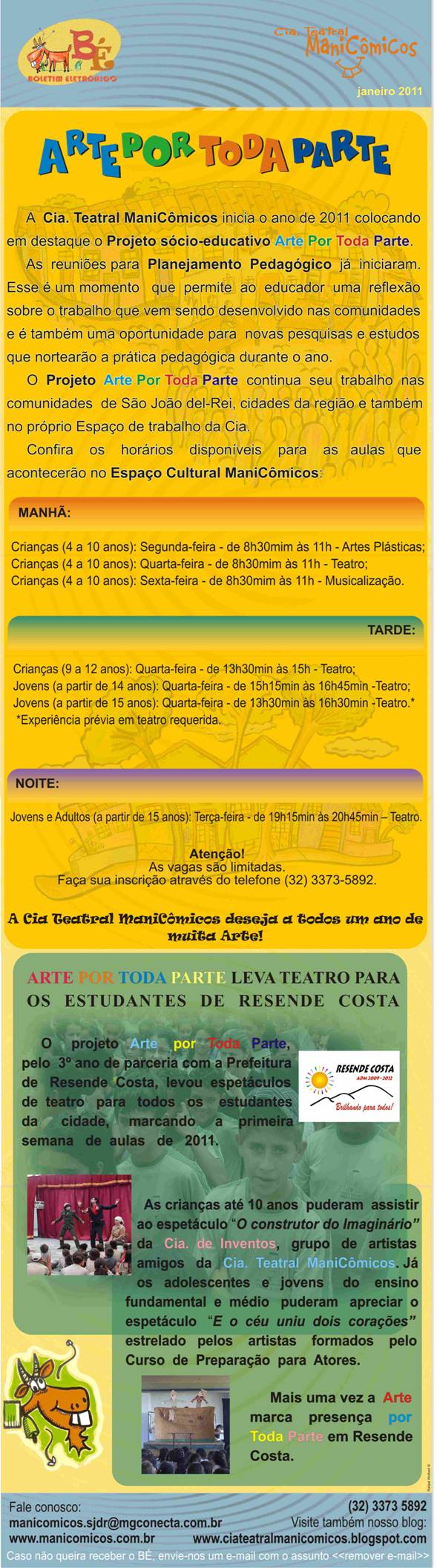Projeto Arte por toda parte . Cia Teatral ManiCômicos inicia em 2011