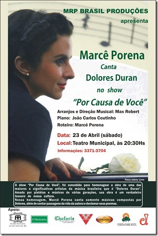Neste show, Marcê Porena, acompanhada do pianista João Carlos Coutinho, canta somente músicas compostas por Dolores, além de contar passagens da vida da autora e declamar seus poemas.