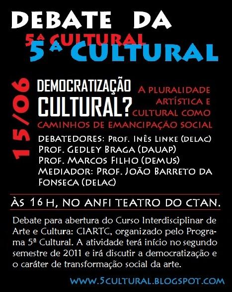 Debate da 5ª Cultural . Democratização cultural? A pluralidade artística e cultural como caminhos de emancipação social