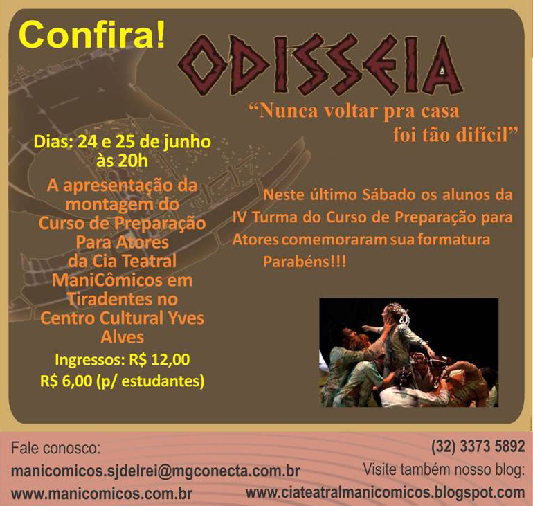 Espetáculo Odisséia . Cia Teatral ManiCômicos . 24 e 25 de Junho