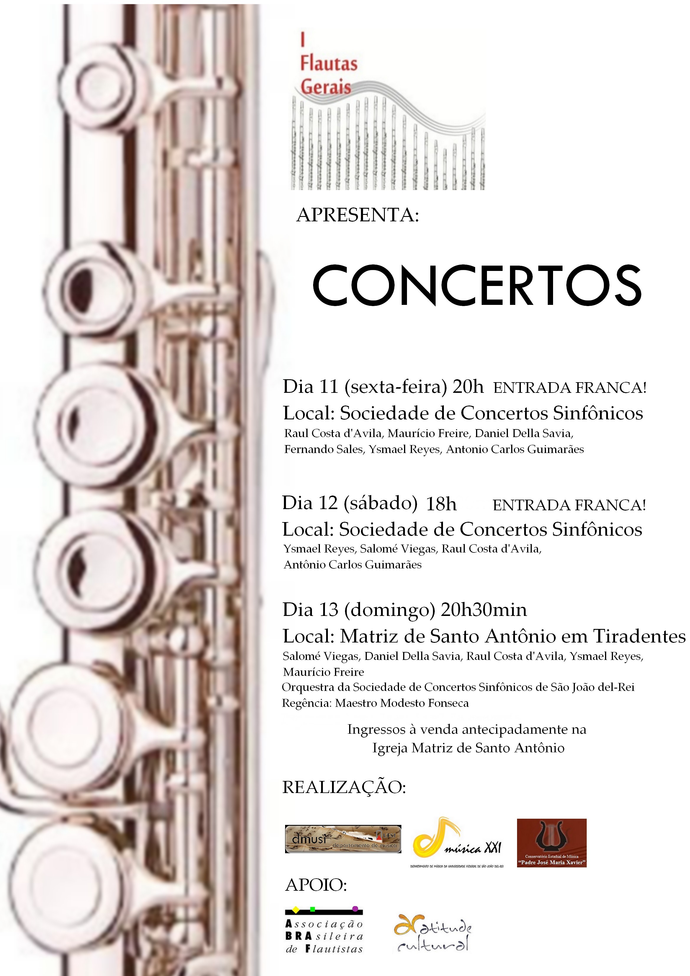12 de Novembro: Concerto com Renato Axelrud, Ysmael Reyes (Venezuela) e Raul Costa d’Ávila . I Flautas Gerais